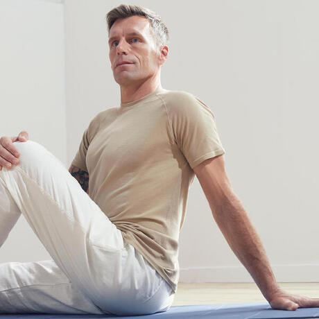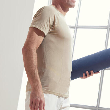 Férfi póló kímélő jógához, varrásmentes, bézs