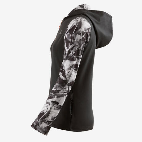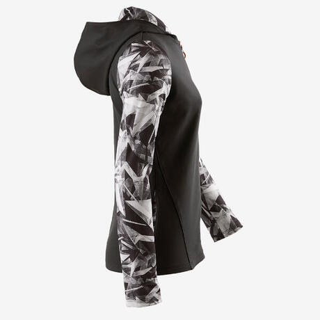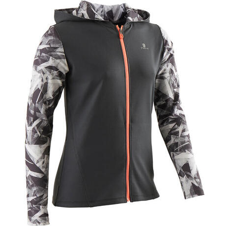 Lány melegítőfelső tornához 900-as, kapucnival, szürke mintás
