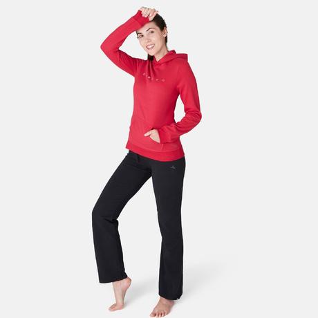 Női kapucnis melegítőfelső kímélő tornához, pilateshez, 520-as, piros
