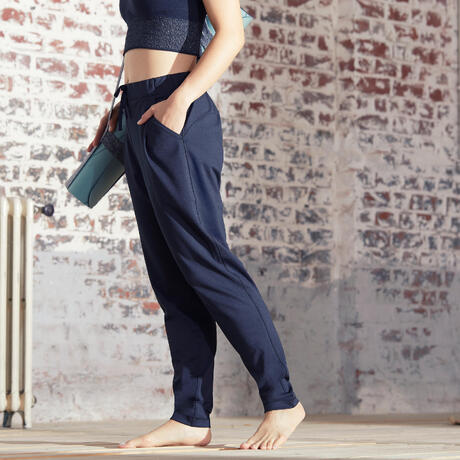 Női nadrág dinamikus jógához Studio, lágy esésű, fekete