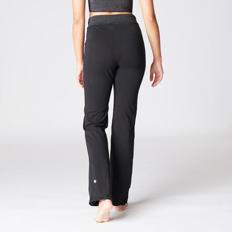 Női nadrág kímélő jógához, biopamut, fekete, szürke
