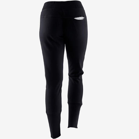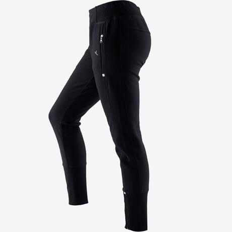Női nadrág kímélő tornához, pilateshez 500-as, cipzáras, fekete