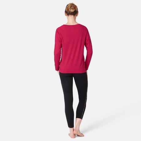 Női póló kímélő kímélő tornához, pilateshez 500-as, hosszú ujjú, piros mintás
