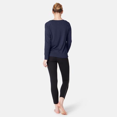 Női póló kímélő kímélő tornához, pilateshez 500-as, hosszú ujjú, tengerészkék