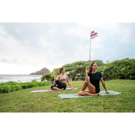Női rövidnadrág kímélő jógához, biopamut, fekete, szürke