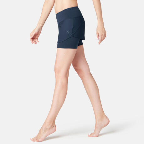 Női rövidnadrág kímélő tornához, pilateshez 520-as, tengerészkék