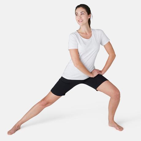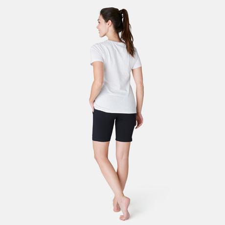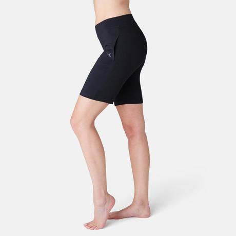 Női rövidnadrág kímélő tornához, pilateshez Fit+ 500-as, egyenes szárú, fekete
