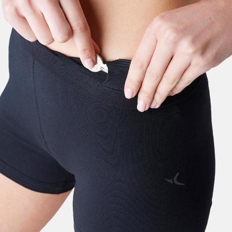 Női rövidnadrág kímélő tornához, pilateshez Fit+ 500-as, szűkített szár, fekete
