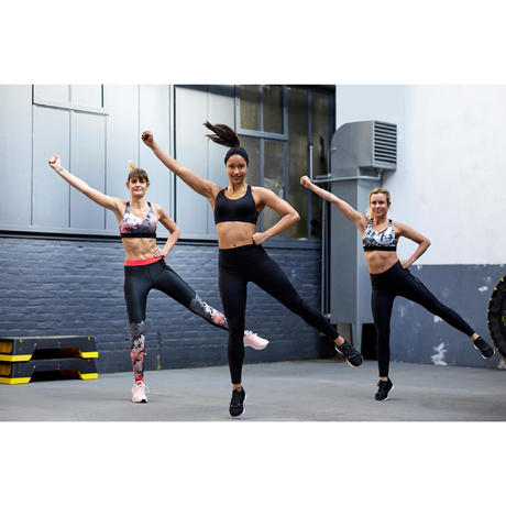 Női sportmelltartó fitneszhez, kardioedzéshez, 500-as, fekete