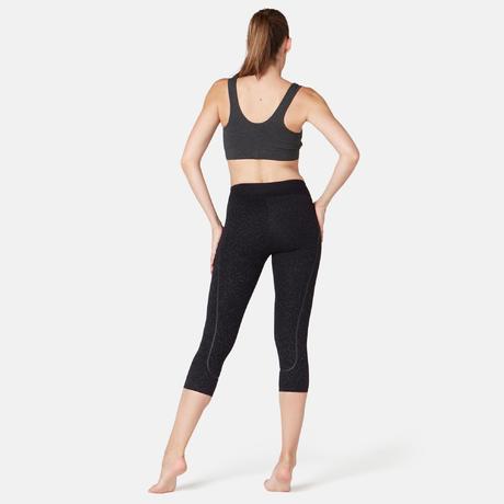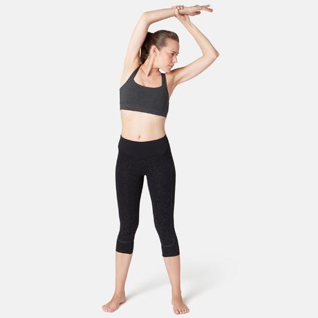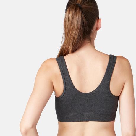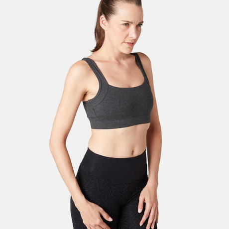 Női sportmelltartó top kímélő tornához, pilateshez, fonalmosott sötétszürke
