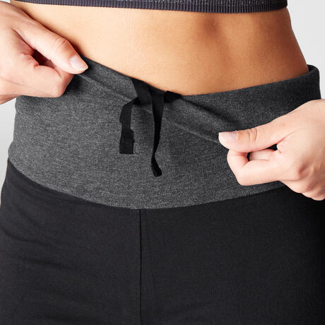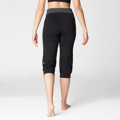 Női térdnadrág kímélő jógához, biopamut, fekete, szürke