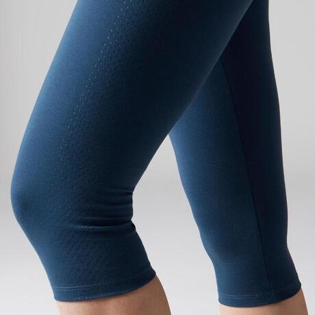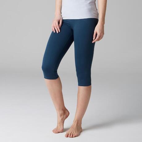 Női térdnadrág tornához, nyújtáshoz és pilateshez, 900-as, sötétkék