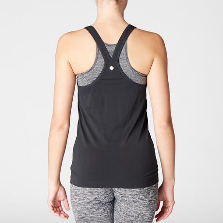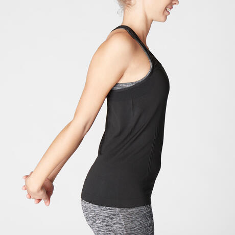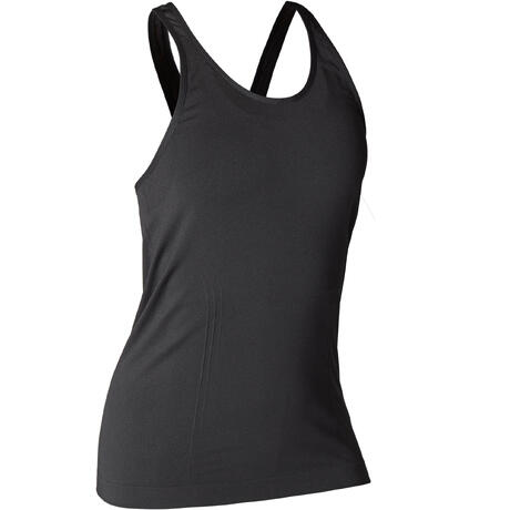 Női ujjatlan felső dinamikus jógához, varrásmentes, fekete