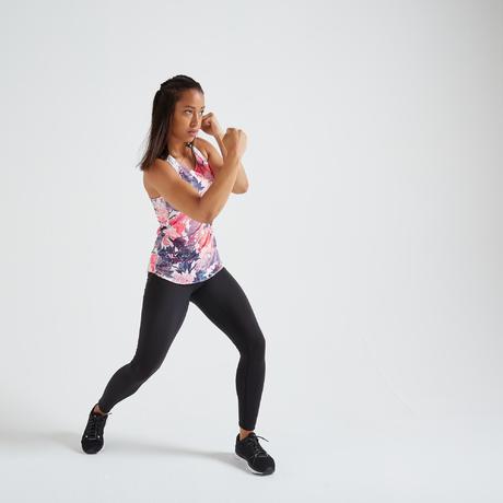 Női ujjatlan felső fitneszhez, kardioedzéshez 500-as, rózsaszín mintás