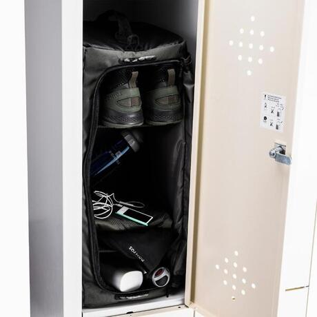 A fitnesz az öltözőben kezdődik! A táskád tökéletes, polcos öltözőszekrénnyé válik, amelyben nem keveredik össze a tiszta és a nedves ruha.
